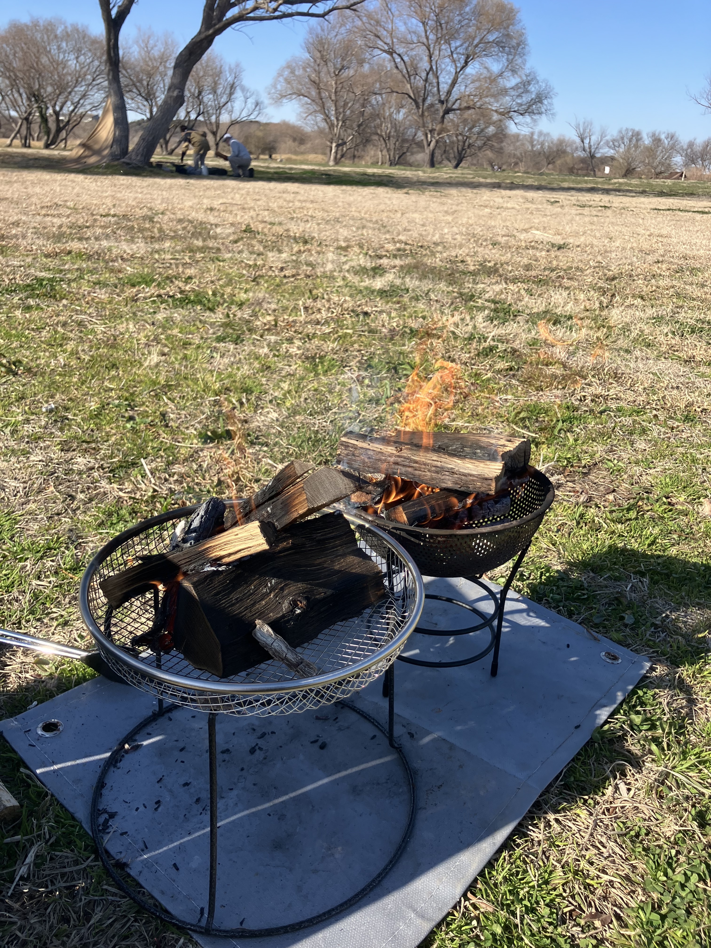 その網に小さいS字フックを取り付け、丸めて綴じれば、薪の下に入れる事で空気の通りが良くなる。
